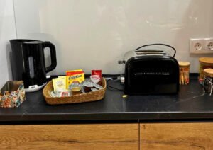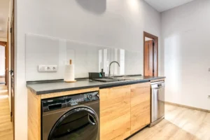 La cocina, espaciosa y totalmente equipada con electrodomésticos, vajilla, cristalería y cubertería, está diseñada para disfrutar cocinando juntos.